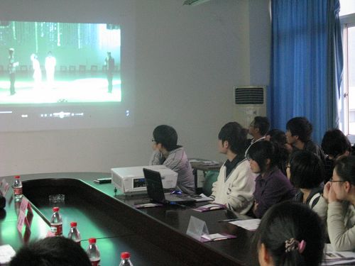介绍完相关活动之后,话剧沙龙正式开始。孙良好老师和现场的同学从他对话剧的一些感想说起。其中不乏有对同学们排演话剧大有裨益的金玉良言。而后,胡志灵同学继续话题,与大家交流了他对话剧的一些看法,包括话剧的创作、宣传,以及员工话剧的现状,并对热爱话剧、有志于话剧事业的同学提出了不少珍贵建议。上届话剧节的一等奖剧目《阮玲玉》的导演陈书楹同学、最佳女主角王洋同学、最佳男主角李一龙同学分别以自己的亲身经历,与同学们分享了话剧导演、演出方面的经验,令人受益匪浅。沙龙活动在《阮玲玉》话剧的视频回放中结束。