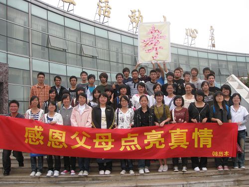 团日活动在《父与女》的视频中拉开序幕,一个女儿等了他出海的父亲一辈子,也找了一辈子,可是父亲迟迟没有归来,直到她老去死去。视频播放完后,曾蓓蕾老师做了开场致辞,她对08历本此次团日活动所做的精心策划和准备给予了充分的肯定,指出“孝”是中华传统文化中的重要组成部分,每个人都应该做到孝顺父母,并预祝本次团日活动圆满成功。同学们感动之余,用自己接下来的表演诠释了对亲情的理解。08历本所有同学分成5个小组,第一个小组带来的是歌曲《常回家看看》,歌曲唱出了同学们的心声,家是永恒的港湾。第二组的情景剧表演《父与子》将班会推向了第一个高潮,程佳超同学极具感染力的表演,深深地感动着现场的同学和老师,那一刻,所有人的心都被触动了。接下来的第三组诗歌朗诵《妈妈》,也引起了同学们极大的共鸣。第四组的个性ppt展示又将感动延续。第五组的歌曲《爸爸妈妈》展示了同学们俏皮可爱的一面,气氛变得轻松愉悦。现场提问环节,使同学们回忆起了与父母在一起的点点滴滴,那都是人生最珍贵的财富。辅导员刘纪峰老师也回忆了自己的成长历程,说起父亲,刘老师有太多的感慨,并希望同学们能够好好对待自己的爸爸妈妈。“爸爸妈妈,我想对你说”这一环节,小小的便签纸承载了大家对父母满满的爱,最后所有的便签纸汇聚成一个大“孝”字,团日活动在《懂你》的歌声中圆满结束。之后,辅导员麻法全老师、刘纪峰老师与08历本全体同学以及学院团委、员工会的部分同学一起合影留念。