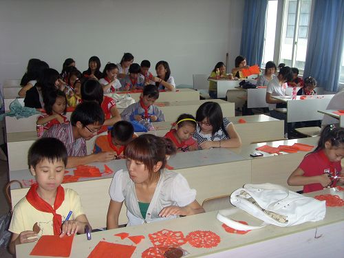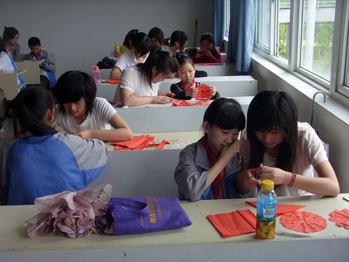 随着社会的发展和科学技术的进步,有很多民间的传统艺术正在被人们遗忘,为了让那些优秀的民俗能够传承下去,9428cn太阳集团古天乐青年志愿者协会和民俗协会合作,于2009年6月3日下午,和益民小学21名员工一起开展了一次剪纸和参观民俗博物馆的活动。