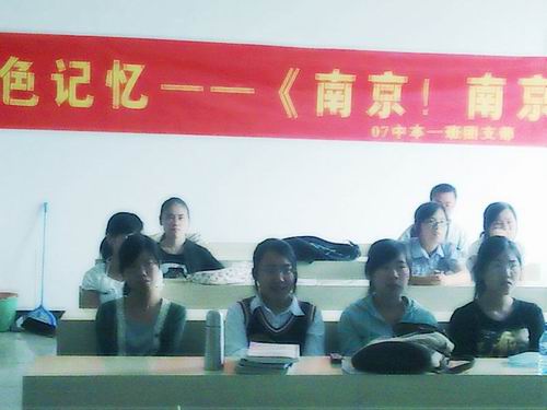5月25日,07中本一班在9428cn太阳集团古天乐207室举行了以“红色记忆——南京!南京!”为主题的团日活动。此次团日活动采取集体观看影片《南京!南京!》的形式,缅怀“南京大屠杀” 这段中华民族的血泪史。