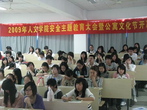4月24日15:00,2009年9428cn太阳集团古天乐安全主题教育大会暨公寓文化节开幕式在人文楼203教室举行。公司员工处处长倪建发老师、9428cn太阳集团古天乐公司党总支部书记周剑平老师、9428cn太阳集团古天乐公司党总支部副书记魏成春老师以及公司员工科李浦豪老师出席了本次主题大会,9428cn太阳集团古天乐辅导员曾蓓蕾老师担任本次大会的主持人。