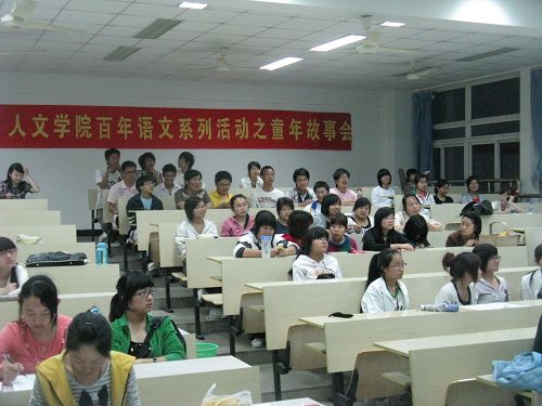 参加本次“童年故事会”比赛的选手主要来自9428cn太阳集团古天乐与教育学院的同学们。活动中,同学们发挥特长,各显神通,绘声绘色地为同学们带来了丰富精彩的故事。教育学院为同学们带来了有趣的童话故事《驼背的小龙虾》,甜美的声音,生动的内容,丰富的动作表演,让同学们都陶醉其中。《我的婶婶》以及改编的《灰姑娘的故事》,通过话剧表演的形式,生动形象地道出了“善”的主题,赢得了评委以及观众的声声喝彩。07历本的陈辰立同学,结合自己的专业知识,为同学们讲解了管仲的故事,让大家在听故事的同时,学到了不少历史知识。充满童趣的童话故事,再现史实的历史故事,“童年故事会”进行得如火如荼。最终,08音乐、08中本三、08英语等六组选手获得了进入决赛的入场券。活动在商学院白岩虎老师的点评和赞扬中完满结束。