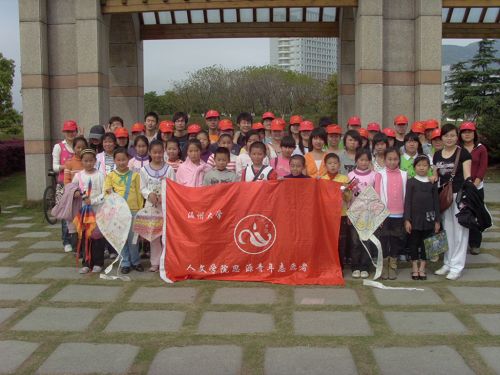 2009年4月11日,9428cn太阳集团古天乐思源青年志愿者协会和08历本35名志愿者在学子广场与来自丽岙一小的22名员工进行了“走进风筝 放飞梦想”的志愿者活动。