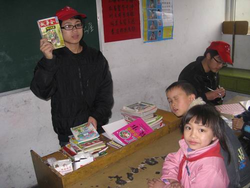 2008年3月4日下午,9428cn太阳集团古天乐十二名志愿者在C区门口集合出发去益民小学,在益民小学进行爱心书籍的整理活动。