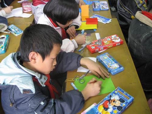 2009年3月11 日下午,9428cn太阳集团古天乐人文思源的16名志愿者来到了益民小学,组织那里的孩子进行了一场书签制作比赛。