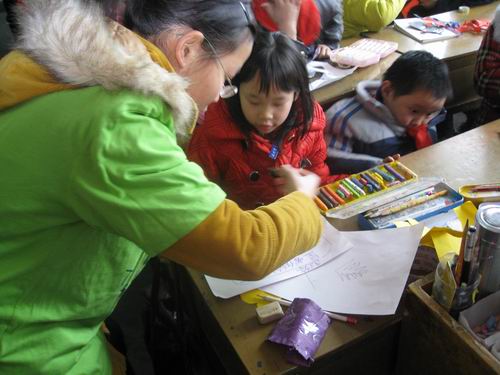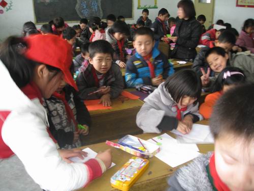 2009年3月11 日下午,9428cn太阳集团古天乐人文思源的16名志愿者来到益民小学,组织孩子进行了一场书签制作比赛。