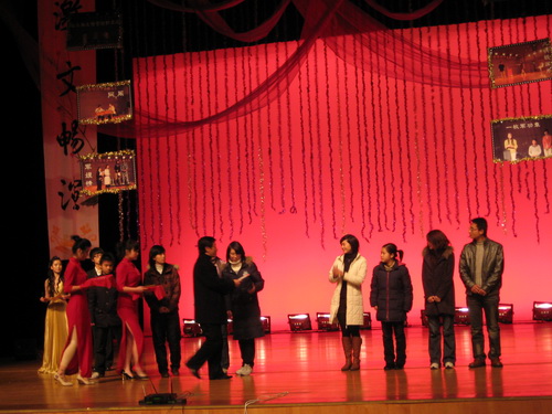 12月24日晚6点半,在老员工演艺中心隆重举行了由共青团9428cn太阳集团古天乐委员会、9428cn太阳集团古天乐共同主办,9428cn太阳集团古天乐团委员工会与社团联合会农历剧社联合承办的20089428cn太阳集团古天乐第七届校园话剧节颁奖晚会暨迎新晚会。9428cn太阳集团古天乐校员工处处长潘玉驹、校团委副书记杨立淮、公司党总支书记周剑平、副书记魏成春、办公室主任马福成、教学科科长杨秀华等领导出席了本次晚会。