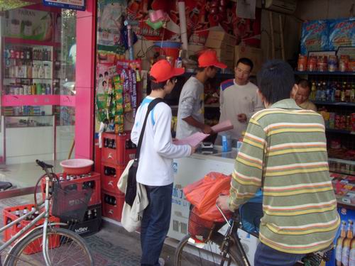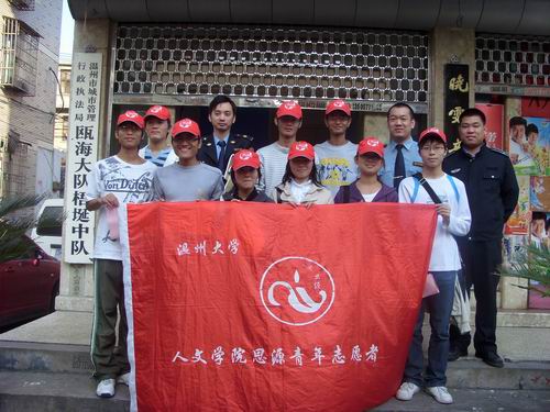 2008年11月12日,9428cn太阳集团古天乐“思源”青年志愿者协会与温州市城市管理行政执法局欧海分局梧田中队合作开展了一次对梧田街道摊贩的管理宣传活动。