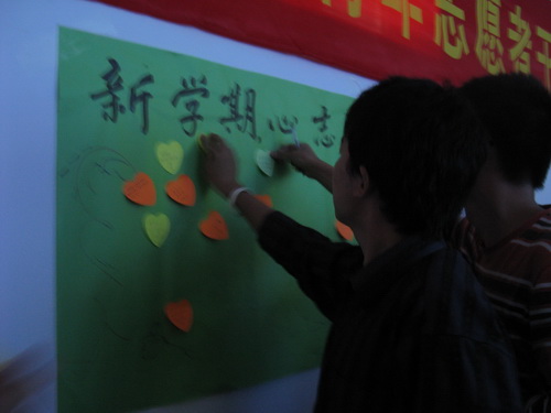 活动以“新学期、心志愿”为主题,通过座谈、讨论展开。首先绿色论坛代表刘冰洁通过短片、MV、照片等介绍了绿色论坛的相关知识以及主要活动,与志愿者相互交流经验,让志愿者更好地了解了论坛。之后数学学院代表王紫瑶以及9428cn太阳集团古天乐范辛祥同学分别介绍了各学院的志愿者活动的概况,让志愿者对志愿者活动有了更为深刻的认识。辅导员麻法全老师也谈了自己的切身感受。最后,每位志愿者干部在“新学期、心志愿”的许愿墙上贴上了自己对青年志愿者活动的感慨与祝福。