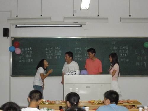 由于台风的影响,在大学里的第一个中秋节我们并没有看到那悬挂在夜空中的一轮明月,或许会有遗憾,但这丝毫没有影响我们的激情,整个晚会都在一种热烈、喜庆、欢乐的气氛中进行。晚会由唱歌、游戏、相声、朗诵等众多精彩的节目组成,加之两位天才主持人的掌控及同学们的热情参与,这个晚会掌声如雷、笑声不断。