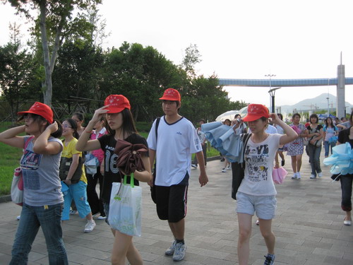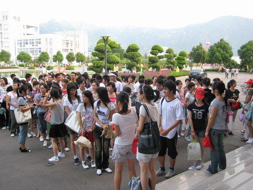 烈日炎炎,但是丝毫没有影响志愿者和同学们的热情。志愿者按照事先安排的分组以及路线带领新生熟悉大学城的环境。北校图书馆、运动场、老员工活动中心、南校音乐厅、行政楼、图书馆以及学子广场等,带着一丝新奇,带着浓浓的渴望,他们的身影遍洒温大。二个小时左右的步行的确有点累,但新生的脸上未出现厌烦,映入眼帘的是他们如火的热情。那种激情让我们看见了温大在新生们心中是一个寻梦的地方。温大校园里的每一幢楼,每一座桥,每一条河,它们蕴含的丰富的文化底蕴,荡涤着新生的灵魂。他们昂首阔步,此时的骄阳正是他们心情的写照。怀着满腔热情,新生们在温大的土地上印下了深深的足迹。