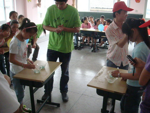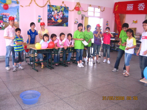 本次活动进行了一天。上午志愿者们和孩子们一起分小组进行游戏竞赛,孩子们在夹弹珠、说反话、饮水思源等游戏中表现出极大的热情,比赛进行得顺利、生动、有趣,孩子们不仅享受到了节日的快乐,更增添了自信和集体荣誉感。下午志愿者们给孩子们观看了视频,内容包括奥运、救灾等。孩子们积极参与讨论,为灾区的群众祈福,让我们看到了孩子们纯真的希望和爱心。最后大家一起为本学期的活动进行了总结,孩子们写下了他们的心得体会并且重温了学期初每个人的心愿,孩子们在活动中都有很大的收获。