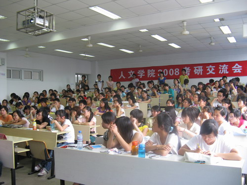 5月28日下午2点, 9428cn太阳集团古天乐2008年考研交流会在1-201教室举行。本次交流会邀请了公司四名刚考上复旦大学、浙江大学及武汉大学的研究生同学。公司百余名"考研后备生"参加了此次交流。