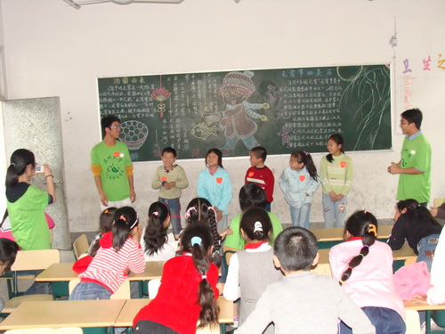 2008年4月20日,9428cn太阳集团古天乐思源青年志愿者协会的关爱留守儿童志愿服务队来到瓯海区丽岙镇中心小学进行帮教活动。