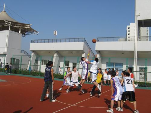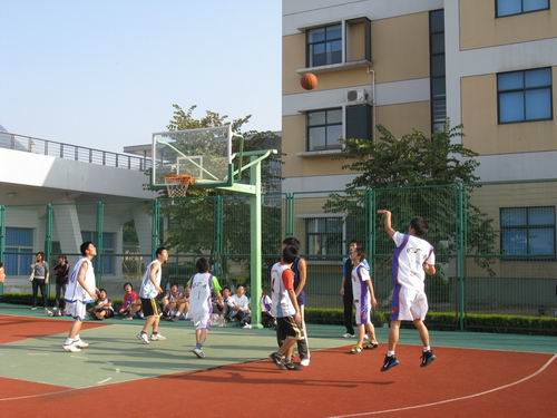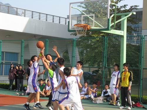 四场比赛同时进行,真是让观众大饱眼福。篮球运动员们个个精神抖擞,精力充沛。完美的弧线一把将篮球投入篮中,让人惊叹不已。运动员们你追我抢,你防我攻,好不激烈。特别是07历本对04中本三的比赛,更是扣人心弦,比分追得十分紧。一会儿07历本占上风,不过不一会对方就紧追不舍,拉成平分。运动员们矫健的身姿在篮球场上跳跃,利索而又有力,足以体现篮球的魅力。