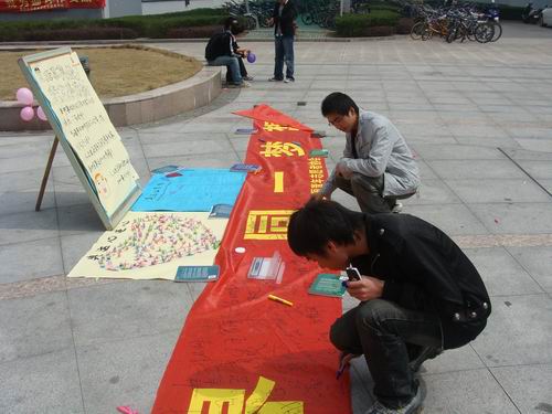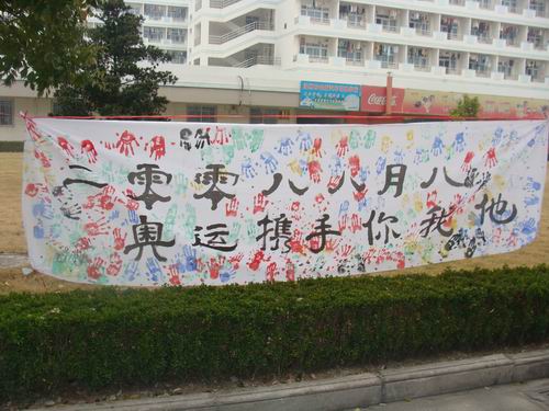活动的过程中,来往的同学积极地在"同一个世界,同一个梦想"的宣传横幅上签下自己的名字,来表示对北京奥运的支持。本次活动的反应效果良好,为宣传奥运营造了一个良好的氛围。