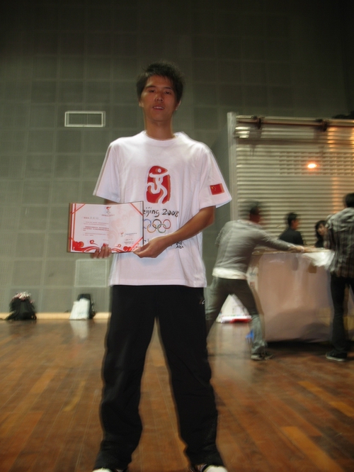 当晚,在杭州师范大学进行的浙江赛区总决赛中,公司陈斌同学在参赛宣言、奥林匹克知识抢答、参与奥运小游戏、奥运创意大比拼、为奥运献礼等环节中充分展现了个人风采,凭借其在科技奥运、人文奥运、绿色奥运领域所作出的努力和成就,以及他对奥林匹克精神深刻的理解,震撼并感染了到场的每一位观众。最终经过评委认真、严格的评选,与其他7名精英一起脱颖而出,荣获“联想中国高校08奥运火炬护跑手”资格。