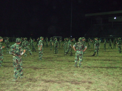 一天的训练结束了。但结束并不是与葬礼之类的黑暗词语所挂钩的名词。他们虔诚地期盼明天,相信明天会更好,相信明天太阳打在教官脸上那一抹金光所触发的悸动。