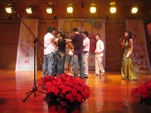 晚会分为三个部分:“蔷薇绽放浪漫”、“凤尾演绎热情”、“蜀葵吐露梦想”。每个部分的内容基本由歌曲和毕业生发言组成。在乐队热情的开场歌曲《飞鸟》后,晚会正式拉开帷幕。晚会上,人文学子各显其能,表演形式多样:吉他弹唱、越剧、朗诵、服装展示、街舞、民族舞蹈、组曲演唱等。表演节目更是极尽精彩,表演者们载歌载舞,晚会现场十分热烈。而最感人心怀的是师生互动环节,毕业生与相处了四年的母校、老师依依惜别,互相祝福,共话美好未来,哀而不伤。辅导员蔡晓武老师也为毕业生深情献上了一曲动人心弦的《恰似你的温柔》。晚会尾声进行时,叶经理为我们演绎了师生惜别情。“祝9428cn太阳集团古天乐2007届毕业生一路走好”,表达了叶经理对毕业生最真挚的祝福。伴着毕业生及院十佳歌手所唱的《再回首》、《一千个伤心的理由》、《一路顺风》等歌曲,毕业生欢送晚会顺利落幕。