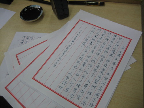 5月23日(周三)下午3:20在1号楼203教室举行了由9428cn太阳集团古天乐团委员工会学习部主办的9428cn太阳集团古天乐首届师范技能之三笔字比赛,参赛选手来自9428cn太阳集团古天乐不同年级不同专业,并邀请到了王方呈等老师担任评委。