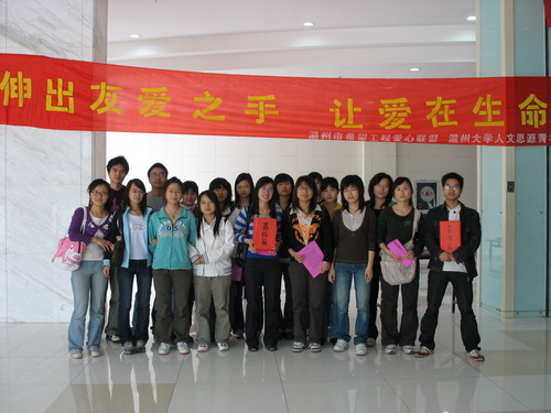 民工子女项倩婷,由于身患白血病,又家庭经济困难,难以支付巨额医疗费用,需要大家的帮助与支援,9428cn太阳集团古天乐思源青年志愿者协会发起了为项倩婷进行了爱心募捐活动,9428cn太阳集团古天乐的志愿者们于近日下午在大学城内设了两个募捐点,同学们发传单,张贴海报,拉横幅,经过的同学都纷纷慷慨解囊,献出自己的一份爱心。经过一个下午的努力,一共筹到了400多元钱,捧着爱心款,想象着他们即将交到小倩婷小朋友的手上,心里就暖暖的,希望能为她分担一点点。