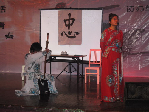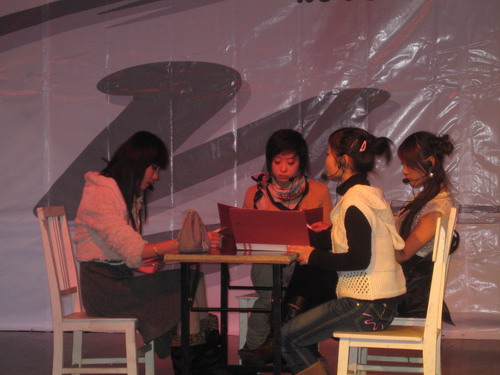庞大的演员阵容,良好的灯光、音乐效果,有序的舞台工作,12支队伍,12个话剧整整进行了5个多小时,让在场的观众一饱眼福。其中有不少是感人的亲情戏,如由农历剧社带来的《父与子》,9428cn太阳集团古天乐05中本3班的同学们献上的《错爱》,教育学院的《最爱的人》等等;也有新编搞笑版的《梁山伯与祝英台》,原创历史剧《“莫须有”罪名》等其他许多类型的话剧。令人欣慰的是,本次决赛参演举目有一半以上剧本是属于原创的。演员们精彩的表现不时博得观众的阵阵掌声,感动处,也不禁纷纷落泪……