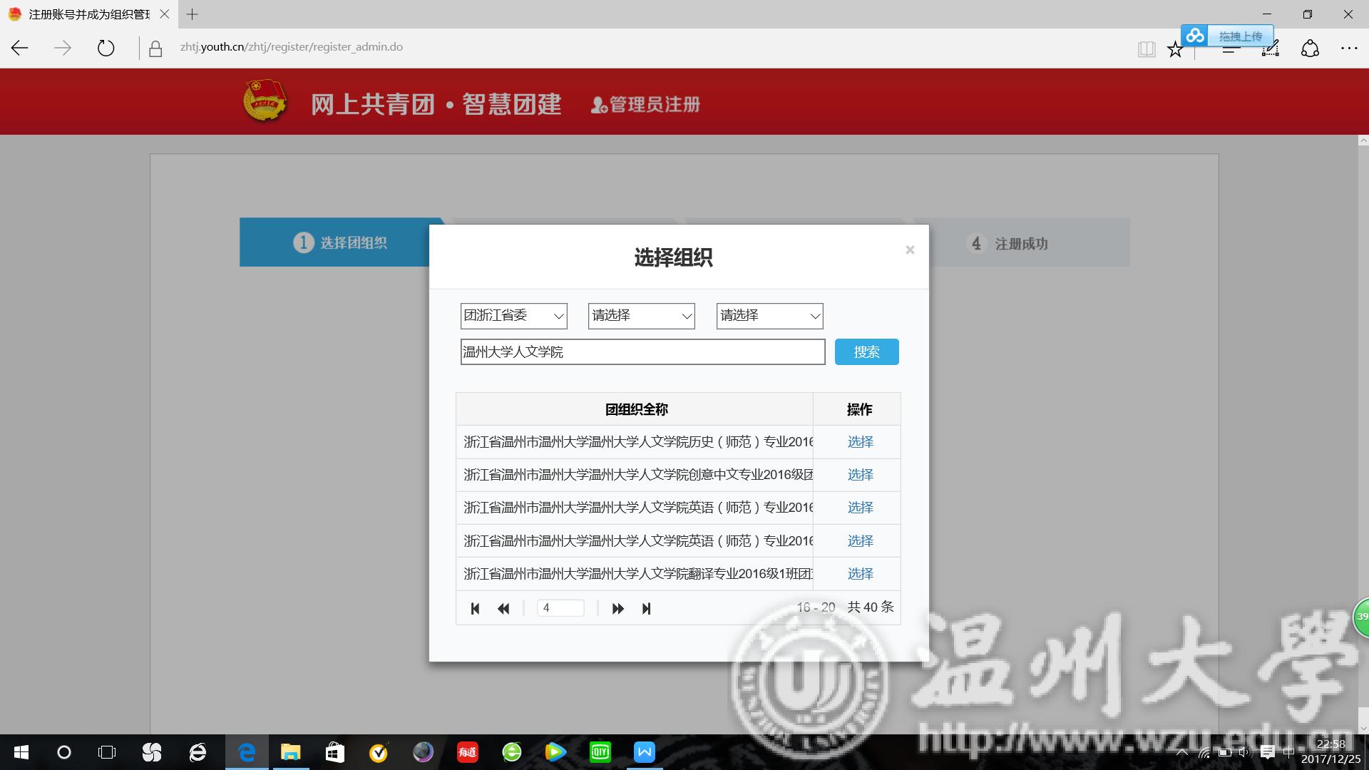 弹出页面后找到自己班级对应的团支部,点击“选择”。