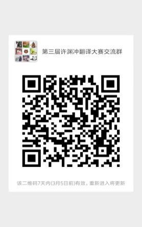 第四届“LSCAT杯”浙江省笔译大赛(英语)已经可以上网报名,报名截止为3月底。请有兴趣的同学根据通知在LSCAT官网报名,并在规定时间内(4月1日-8日)下载源文和上传译文。如有疑问请直接联系指导老师或扫以下二维码加入笔译交流群。
