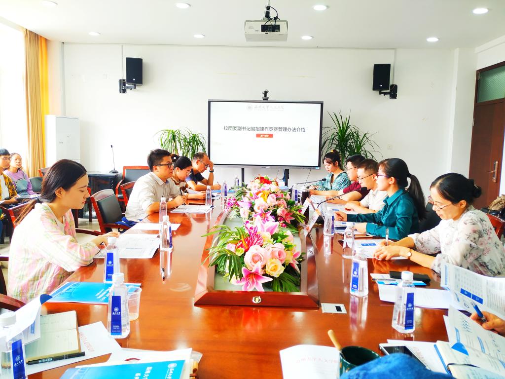 9月23日上午,公司于人文楼213会议室召开了9428cn太阳集团古天乐2021年“挑战杯”老员工课外学术科技作品竞赛推进会,校团委副书记易招娣、公司党委副书记魏一、学工办辅导员胡震鹏、参赛指导老师和员工代表出席此次会议。