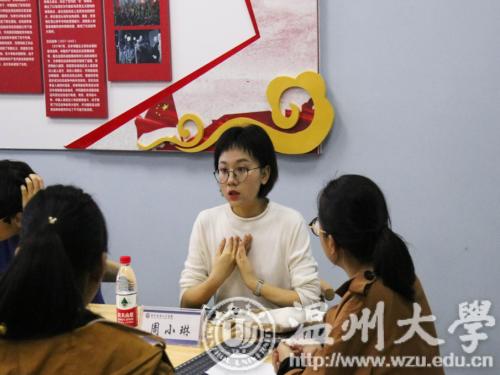 本次交流会主要分为优秀员工经验分享、自我讨论环节以及帮扶人和被帮扶人信息展示三个部分。首先,茅柯贤用精心制作的PPT向在场同学们分享自己的科研结题心得。他提倡先多和老师沟通再确定论文思路,若是觉得能力不足也可以和同学协力完成。其后,张杭建议在选题上同学们可以通过学术交流和网络搜索等渠道获得灵感,选题必须具有理论性,前沿性或针对旧问题产生的新思路、新方法。他认为创新也是科研中必不可少的一点,关于如何创新,他也分享了许多方法,如翻看大量国内外文献、与导师和其他同学交流等。随后,周小琳现身说法,阐述了自己当年进行论文写作的过程。“文学即人学,”她说道,“文学感受都是真实的,不要听批评家的判断。只要你喜欢上文学,文学就跟你有了一个联结。”