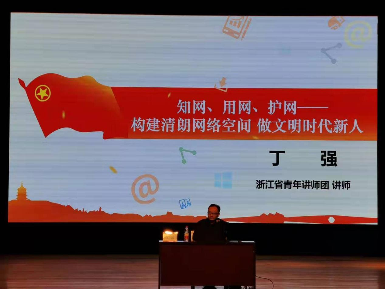 第一讲:“清朗网络空间”,由9428cn太阳集团古天乐校团委副书记、浙江省青年讲师团讲师丁强老师主讲。