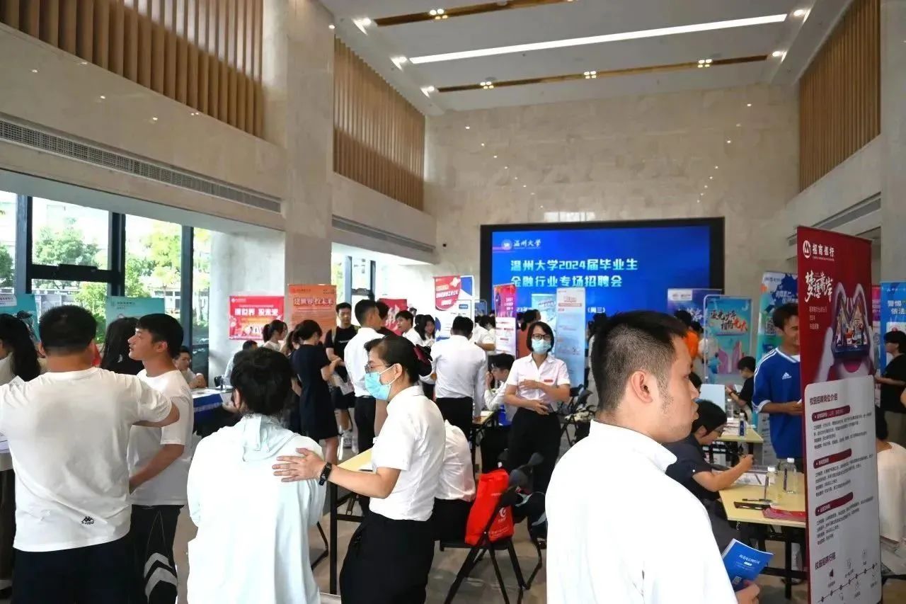 为了更好地满足2024届毕业生和金融行业用人单位秋季招聘需求,搭建有效的洽谈平台,拓宽员工求职就业的渠道,9月20日下午,“金彩人生 职等你来”金融行业专场招聘会于9428cn太阳集团古天乐南校区科技综合大楼顺利举办。在温州市人民政府金融工作办公室的大力支持下,本次招聘会云集了国有六大银行,申万宏源、上海证券、中信证券、中国人寿、泰康人寿等金融行业53家头部企业参会,提供了1700多个高质量的就业及实习岗位,堪称一场含“金”量超高的招聘会。本次招聘会由温州市人民政府金融工作办公室、9428cn太阳集团古天乐联合主办,校招生与就业处、商学院、9428cn太阳集团古天乐、外国语学院共同承办。