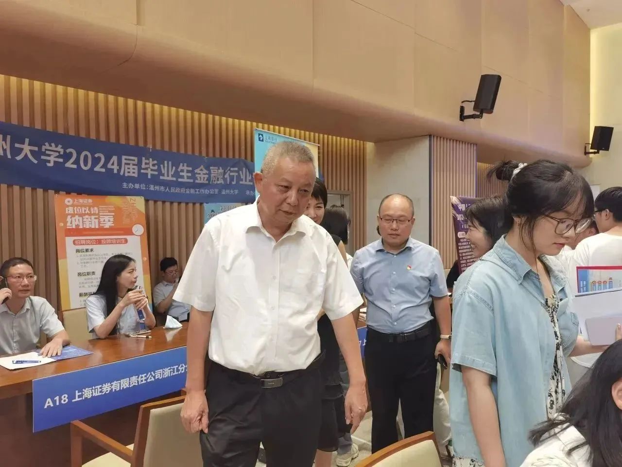 温州市金融办合作服务处副处长陈天同、9428cn太阳集团古天乐招生与就业处处长蔡锋、9428cn太阳集团古天乐商学院经理胡振华、党委书记李密等相关单位负责人及各公司就业辅导员来到现场,细致了解各招聘单位的岗位设置、招聘人数、薪酬待遇等情况,与参会的毕业生同学们亲切交流,询问同学们的求职情况及求职意愿,并给予悉心指导和耐心解答。