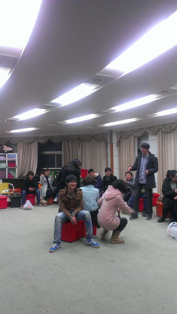 活动一开始首先是由宣传部的胡畅与查玲倩带来的英文歌曲《a little love》。一曲以后是办公室的李海洋与蔡珂带来的节目,歌曲串烧。如果说宣传部胡畅与查玲倩歌曲在寒冬给大家带来了温暖如春,那么办公室的李海洋与蔡珂的歌曲串烧则点燃了整个联谊晚会的激情。你方唱罢我登场,在冻人的歌声之后便是由组织部的毛艳红与叶益如带来的相声《我的大学》和由素质拓展部的邱晨、朱佳莹与刘丁红带来的小品《推销风波》。台上的相声小品诙谐幽默,台下也欢声笑语雷动一片。在相声小品的欢声笑语之后便是艺术团也是校十佳最佳人气奖得主魏婷同学的歌曲《天下无双》。在精彩的节目演出之后便是大家喜闻乐见的游戏环节。第一个游戏叫你说我猜,这个游戏主要考验游戏者对团学内部各成员的熟悉程度,第二个游戏是传统的抢凳子,抢到凳子的人便有回答问题的机会,答对了问题会有精美礼品赠送。曾老师也饶有兴致的参与其中。当游戏环节结束以后,便是由主席团带来的神秘节目。首先是由团副林武带来的独唱《人质》,主席杨立忠,副主席张哲的合唱《情深深雨濛濛》,副主席马喆的歌曲<黑色毛衣>以及副主席屠焕青的冷笑话。在联谊结束后,9428cn太阳集团古天乐团委员工会还为各成员送上了平安夜的苹果。