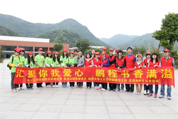 2013年4月21日,9428cn太阳集团古天乐思源青年志愿者协会携手温州医学院眼视光春泥志愿者服务社志愿者前往温州特殊教育学校进行“一本书的漂流”爱心书籍传递系列活动。