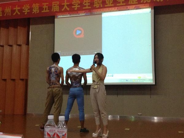老员工职业生涯规划大赛由9428cn太阳集团古天乐就业处主办,面向在校员工,以"普及规划知识,提升职业能力"为宗旨,分为职业规划与创业规划两个模块的比赛,评出"十佳职业规划之星"荣誉称号。 此次大赛从上个学期末启动以来,经过初选、复赛,最后14位优秀的选手进入总决赛。总决赛分为PPT规划作品展示、职业角色模拟和现场答辩等三个环节。公司的丁明月同学以作品《fly》,做一名人体彩绘师,参加职业规划类比赛。在观众热烈的掌声中,她以对职业探索、自我探索的深刻分析,对成长之路的准确规划,对大赛主题的完美陈述,对评委提问的灵活应变,大方得体的仪表,流畅精炼的谈吐等优点赢得了评委和在场观众的好评,最终以总评并列第二名,职业类第一名的成绩获得了"十佳职业规划之星"的荣誉。