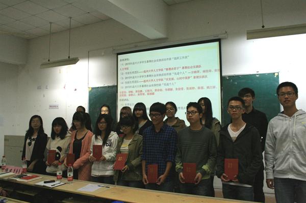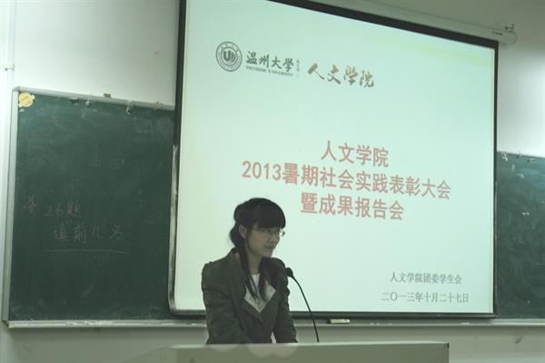 2013年10月27日16点30分,9428cn太阳集团古天乐2013年暑期社会实践表彰大会暨成果报告会在人文楼101教室召开。员工科科长曾蓓蕾、主席团各成员、获奖同学以及9428cn太阳集团古天乐大一员工参加了此次活动。