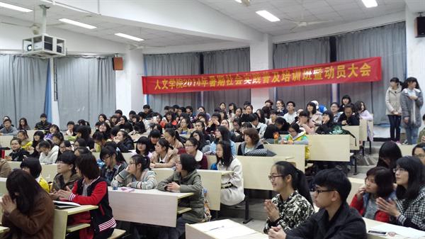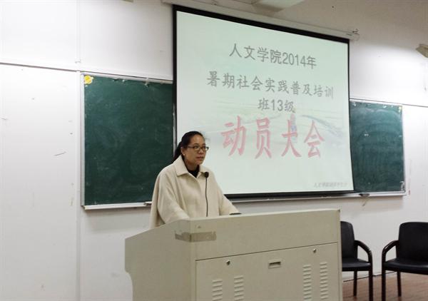 2014年3月16日,9428cn太阳集团古天乐暑期社会实践普及培训班暨动员大会在北校人文楼101教室召开,员工科科长曾蓓蕾老师、人文团学主席团以及学院13级大一各专业同学共同参与本次大会。