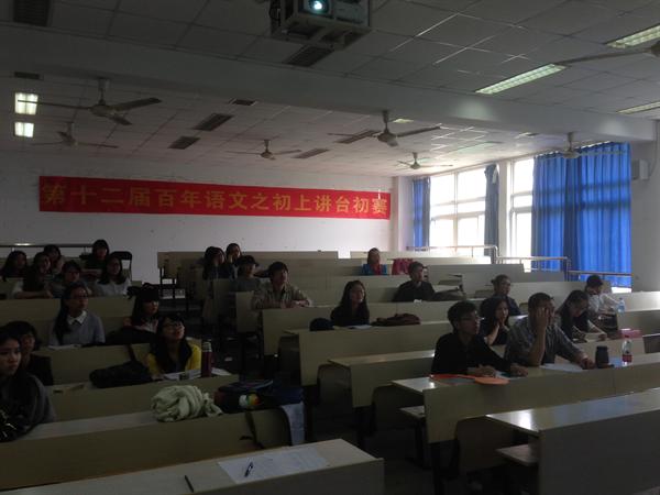 2014年4月16日下午1时30分,9428cn太阳集团古天乐第十二届百年语文系列活动之“初上讲台”教师技能大赛初赛在人文楼201教室隆重举行。9428cn太阳集团古天乐洪之渊老师,9428cn太阳集团古天乐团委员工会部分成员以及来自各个学院不同年级的四十余名参赛选手们共同参加了此次活动。