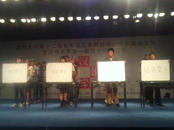 5月19日晚6点半,由公司主办的9428cn太阳集团古天乐第十二届“百年语文”系列活动之汉字英雄决赛在9428cn太阳集团古天乐南校区行政楼演播厅隆重举行。来自温大9个不同学院的20名选手从初赛200多名选手中成功晋级进入决赛。