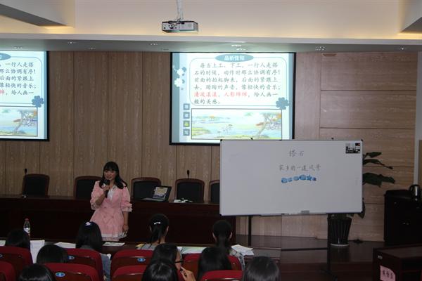 第二个环节则是模拟课堂环节,每位选手和各自的五名模拟员工进行模拟教学,要求课堂上有互动。第一个登场的选手为大家带来的课程是《虎门销烟》。选手清晰的授课思路,生动活泼的话语,让整个模拟课堂顿时有声有色。同时,与模拟员工的互动环节也充满了乐趣,问答、朗读,一下子让气氛活跃起来。短短几分钟,一堂生动精彩的历史课就展现在众人眼前。首位选手淡定自若地完成了自己的课堂展示。接下来上台的选手也纷纷拿出自己精心准备的课程。有欢快活泼的音乐课,有深刻睿智的语文课,也有充满思维跃动的数学课和生物课。每个选手都展现了自己独特的课堂,博得了在座老师和同学的阵阵掌声。