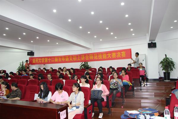 2014年5月14日晚6时,9428cn太阳集团古天乐第十二届百年语文系列活动之“初上讲台”教师技能大赛初决赛在北校人文楼203室隆重举行。9428cn太阳集团古天乐洪之渊老师,陈柳老师,陈志刚老师出席此次活动并担任评委老师。十位来自不同学院的选手入围到本次大赛的决赛。广大同学观摩了这次大赛。