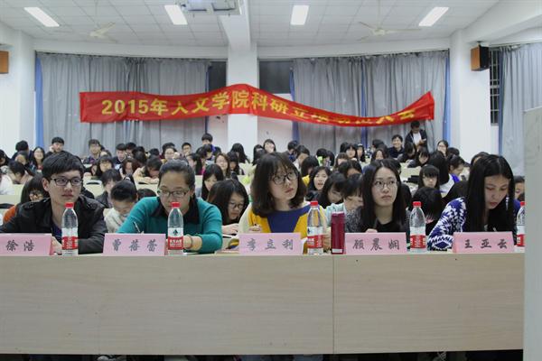 会议在一片期待中展开。首先,由科协干事骆雪娟为大家介绍了大会流程。并且她又详细地作了关于立项、科研流程、注意事项及往年情况的介绍。之后,进入大家最期待的经验分享与提问环节。12级历本的卢杭学姐首先上台分享她的经验,她就一些实际性问题展开讲解,言语生动活泼,赢得了热烈的掌声。第二个上台分享的是13级文化创意学研究生王亚云学姐,她在宏观上作了立项讲解,并以“过来人”的身份呼吁同学们在大一时尽早立项,把握锻炼自我的最佳时机。紧接着12级广本的顾晨娴学姐作了发言。她主要介绍了选题的类别、撰写论文时资料获取的途径及联系老师方面的注意事项。顾晨娴学姐的发言给大家特别是广告专业的同学们带来了极大的帮助。最后上台的是11级中本的李立利学姐。她解析了如何将自己的想法与立项结合起来,并提醒大家立项时的注意事项,使得同学们倍增信心。