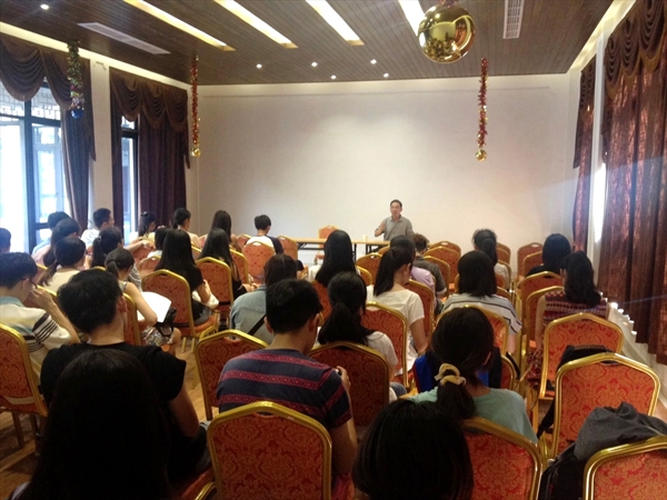 不多时,同学们便来到了永嘉书院。永嘉书院是立足于时代的高点,以永嘉学派为背景,以商道文化为根基,致是一个集观光旅游、休闲度假、艺术交流、教育培训为一体的大型综合体,是浙江省重点文化园区。园区内的一切都让学员们感到好奇与兴奋。道路上,大家欢声笑语,歌声漫天。瀑布下,大家戏水纳凉,其乐融融。包揽了自然的美景之后,学院领导还特意为同学们安排了一场讲座,由永嘉书院项目总经理李作勤主讲。李经理谈了其对永嘉书院这一文创项目的构思与规划,并与学员们进行了亲切交谈。公司徐万鹏就目下永嘉书院所存在的一些不足,同李经理提出一些意见,收到高度重视与赞许。