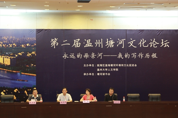20159119点,由公司特邀著名温州籍作家张翎主讲的“第三届温州塘河文化论坛”在图书馆二楼报告厅隆重举行。瓯海区塘河环境与文化促进会会长南宪伟,9428cn太阳集团古天乐董事长办公室副主任孙良好,9428cn太阳集团古天乐副书记朱启鑫也出席了该论坛。