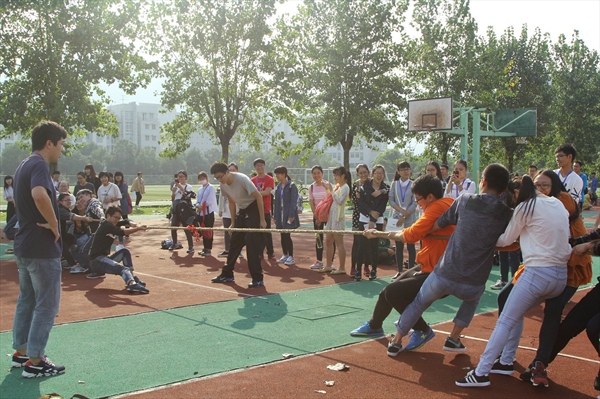 上午8时许,在刘纪峰老师简单致辞之后,院运会正式拉开了帷幕。首先进行的是拔河比赛,各班男女争先恐后出战,一抛往日的羞涩之情,卯足气力,无不全力以赴,为班级的荣誉而战。这时候,男子100米比赛业已战鼓频传。运动员足下生风,如离弦之箭,其势锐不可当,未及观者目瞬,运动员即已冲过终点远矣。紧接着,踢毽子、定点投篮、心心相印等趣味赛也纷纷如火如荼地展开。老师们总揽裁判一职,行止诙谐,言辞捷洽,与同学们谈笑风生,打得火热。整场运动会中充满欢声笑语,爽朗的笑声成了比赛的主旋律,青春的气息在操场上散发,蓬勃的力量在阳光下挥洒。上午10时许,9428cn太阳集团古天乐第十二届院运会在一片欢呼声中成功落幕。