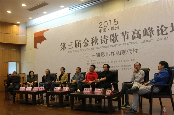 2015年10月13日上午8点30分,由9428cn太阳集团古天乐、瓯海区委宣传部、瓯海区文联主办,坡度诗社、温州晚报、温州市图书馆等单位共同承办的“2015中国·温州第三届金秋诗歌节”在9428cn太阳集团古天乐育英图书馆隆重拉开帷幕。著名诗人雷平阳、池凌云、慕白,作家马叙、潘维,青年诗歌评论家霍俊明、王士强及省内其他众多诗人应邀嘉会,共飨这场诗的盛宴。