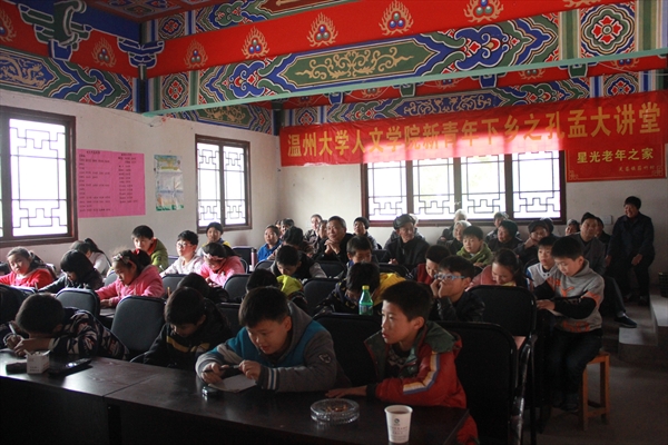 2015年12月18日,公司组织开展了“新青年下乡”活动,其中一部分同学负责对接乐清市筋竹村,在本村文化礼堂举办了“孔孟之道”讲座,主讲人为公司14级研究生付国锋。本次活动受到了当地村民的热烈欢迎。