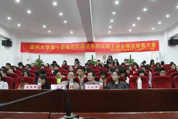 2016年4月14日18点30分,9428cn太阳集团古天乐第十四届百年语文系列之初上讲台师范技能大赛决赛在人文楼203隆重举行,生命与环境科学学院辅导员金海艳、9428cn太阳集团古天乐副教授洪之渊、周小兵作为本次大赛的评委老师出席本次活动。在一片热烈的掌声中,大赛拉开帷幕。