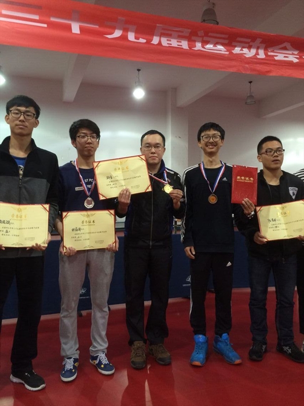 在相关老师和同学的辛勤组织下,公司派出五男五女参加了本次球赛,并根据赛程安排进行了男女单打、男女双打、混双等小组赛。选手在赛场一展才华,傲视群雄。尚未上场的选手中,有的在外场积极热身,有的在赛场呐喊助威,现场人声鼎沸,气势恢廓。第一晚的小组赛结束,公司选手虽多数未能进击决赛,但都觉得借此机遇能与外院高手过招亦属幸事。25日晚18点,巅峰之战火热开打。公司研究生郑重学长与超豪学区新科冠军鏖战良久,顺利冲进决赛后,再与自己的校队队友较量,最终以3:0的比分斩获本届比赛男子单打冠军。公司荣膺全校排名第九的好成绩。